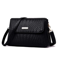 Kožená taška přes rameno, dámská taška, embosované květiny, černá