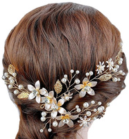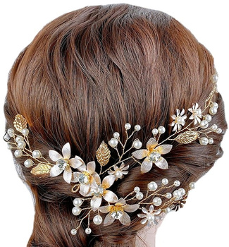 Čelenka s ozdobou větve ve zlaté barvě na drátku s perličkami na SVATBU